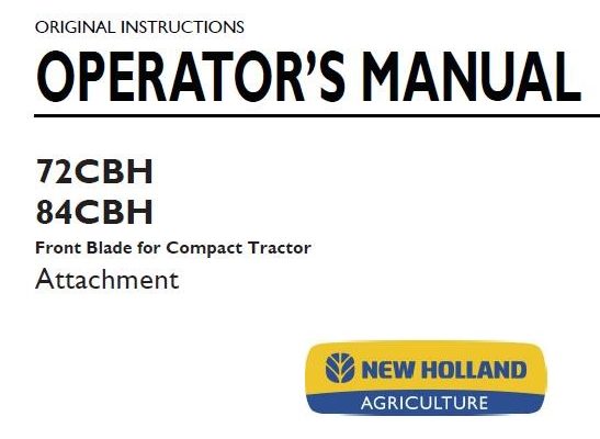 New Holland 72CBH ,84CBH Front Blade for Compact Tractor Operator’s Manual