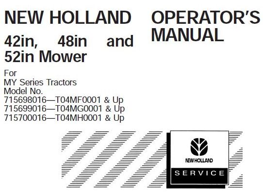 This is Complete Operator's Manual for New Holland 42in, 48in and 52in Mower. Your machine has been designed and built to the highest standards of quality. It conforms to…