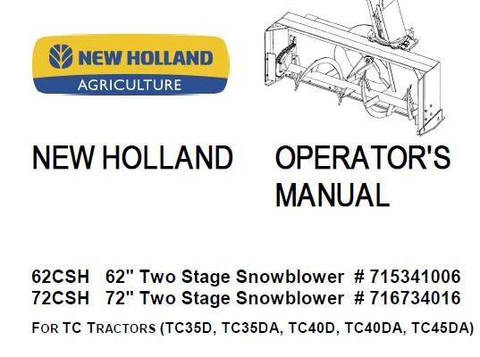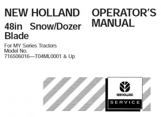 This is Complete Operator's Manual for New Holland 48in Snow / Dozer Blade. Your machine has been designed and built to the highest standards of quality. It conforms to…