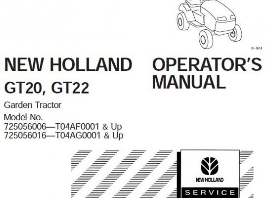 New Holland GT20, GT22 Garden Tractor Operator’s Manual ( 725056006—T04AF0001 & Up , 725056016—T04AG0001 & Up )