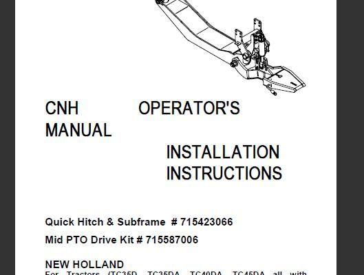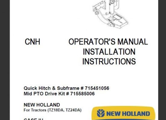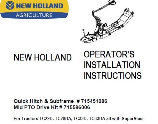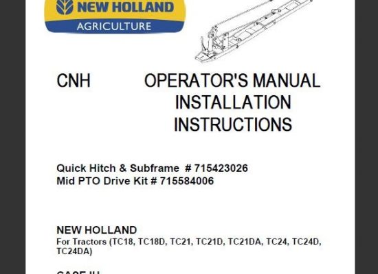 This is Complete Operator's Manual for New Holland Quick Hitch & Subframe Mid PTO Drive Kit. Your machine has been designed and built to the highest standards of quality.…