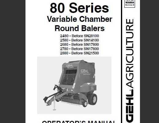This is Complete Operator's Manual for Gehl 80 Series ( 2480, 2580, 2680, 2780, 2880 ) Variable Chamber Round Balers. Your machine has been designed and built to the…