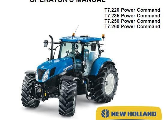 This is Complete Operator's Manual for New Holland T7.220, T7.235, T7.250, T7.260 Power Command Tractor. Your machine has been designed and built to the highest standards of quality. It…