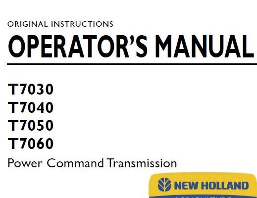 New Holland T7030, T7040, T7050, T7060 Power Command Transmission Tractor Operator’s Manual