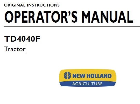 New Holland TD4040F Tractor Operator’s Manual