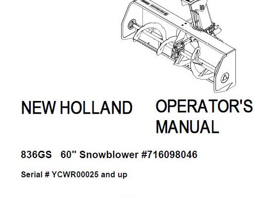 New Holland 836GS 60″ Snowblower Operator’s Manual (Serial # YCWR00025 and up)