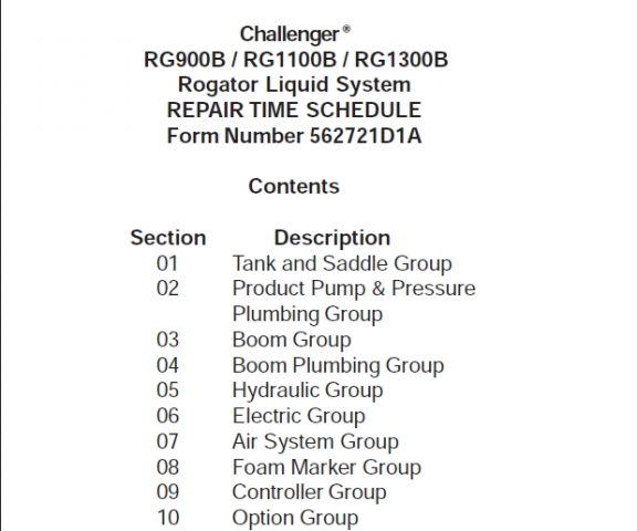 172 Challenger RG900B RG1100B RG1300B Row Crop Rogator Liquid System Repair Time Schedule Manual