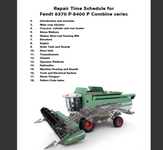 028 Fendt 8370P , 8400 P Combine Repair Time Schedule Manual