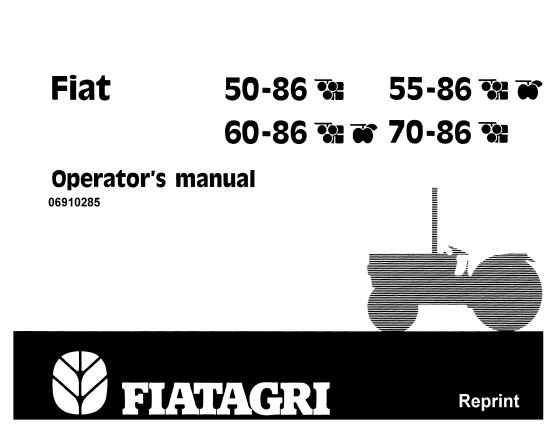 This is Complete Operator’s Manual for FiatTrattori FIAT 50-86 , 55- 86 , 60-86 , 70-86 Tractor .