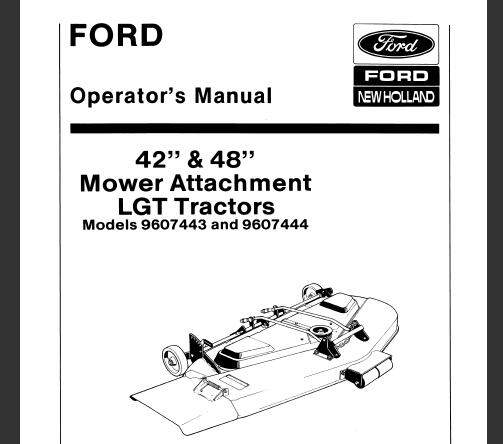 This is Complete Operator’s Manual for Ford 42″ & 48″ Mower Attachment LGT Tractors.