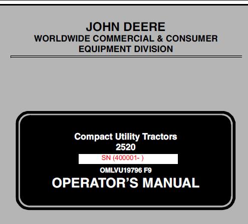 This is Complete Operator’s Manual for John Deere 2520 Compact Utility Tractor.