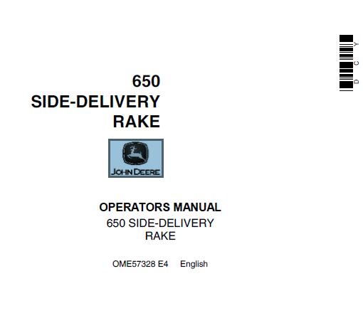 This is Complete Operator’s Manual for John Deere 650 SIDE-DELIVERY RAKE.