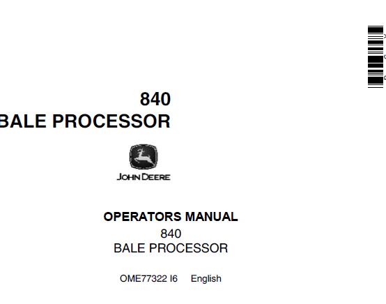 654 John Deere 840 BALE PROCESSOR Operator’s Manual ( ome77322 )