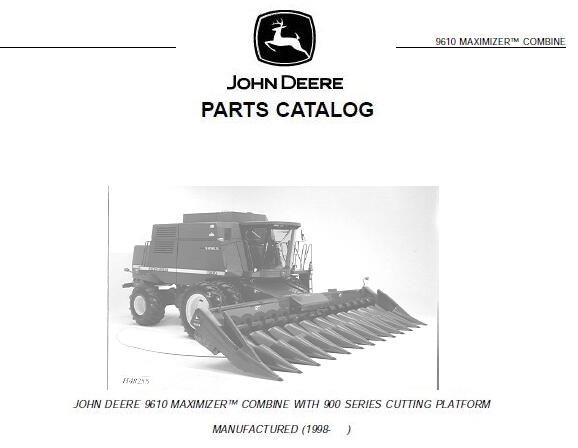 John Deere 9610 MAXIMIZER COMBINE WITH 900 SERIES CUTTING PLATFORM parts catalog manual has easy to read text sections with top quality diagrams and instructions, will guide you through fundamentals of maintaining and repairing, step-by-step, to teach you what the factory trained technicians already know by heart. For that reason, you will not find it difficult to repair or to maintain some of the innovative features loaded on the vehicle when you have the manual. Using this repair manual is the true way to keep your vehicle working properly.