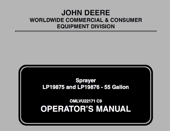 This is Complete Operator’s Manual for John Deere LP19875 and LP19876 – 55 Gallon Sprayer .