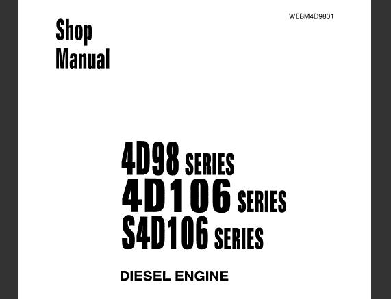 This highly detailed repair manual covers all repairs and servicing. All technical details taken directly from the manufacturer can be found in this manual, It is the factory manual from the manufacturer. Komatsu 4D98 SERIES, 4D106 SERIES, S4D106 Series Diesel Engine service repair manual is the same manual used by professional technicians, mechanics and workshops around the world.