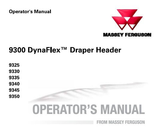 This is Complete Operator’s Manual for Massey Ferguson 9300 DynaFlex Draper Header .