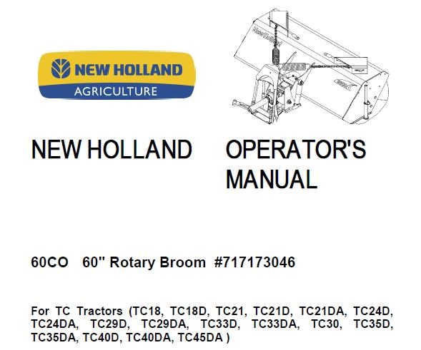 This is Complete Operator’s Manual for New Holland 60CO 60″ Rotary Broom