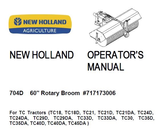 This is Complete Operator’s Manual for New Holland 704D 60″ Rotary Broom.