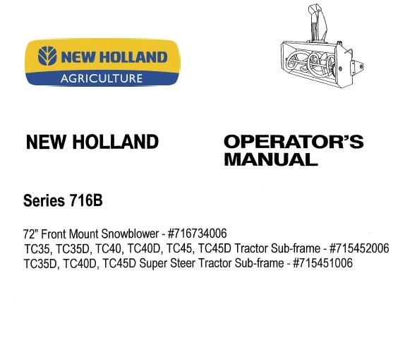 Use this New Holland 72″ Front Mount Snowbloweroperator’s manual as a guide, Your machine will remain a reliable working tool provided it is kept in good working condition and serviced properly.