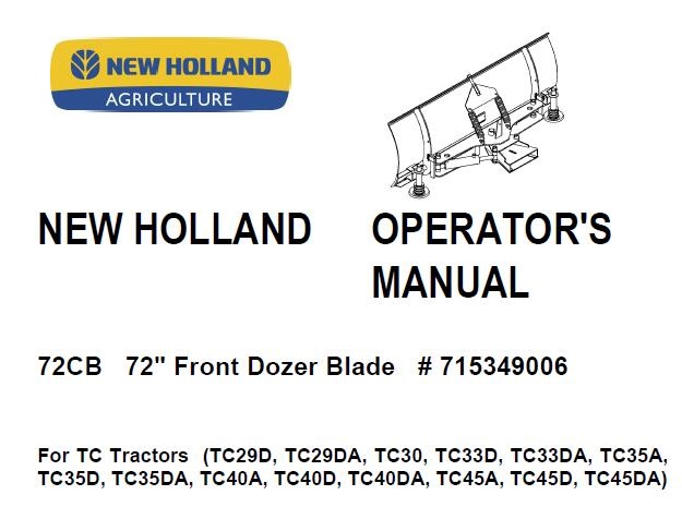 This is Complete Operator’s Manual for New Holland 72CB 72″ Front Dozer Blade .