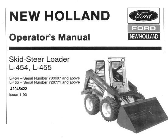 This is Complete Operator’s Manual for New Holland Ford L-454, L-455 Skid-Steer Loader.