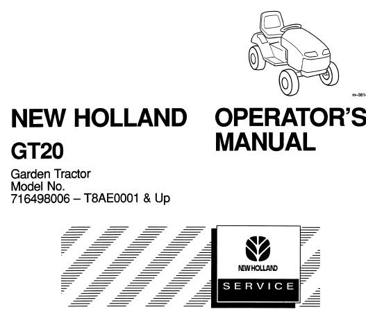 Use this New Holland GT20 Garden Tractor operator’s manual as a guide, Your machine will remain a reliable working tool provided it is kept in good working condition and serviced properly.