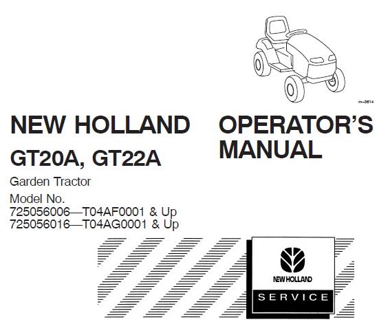 This is Complete Operator’s Manual for New Holland GT20A, GT22A Garden Tractor.