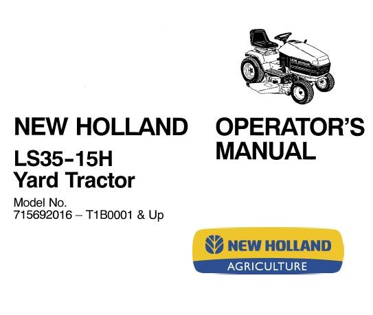 This is Complete Operator’s Manual for New Holland LS35 – 15H Yard Tractor.