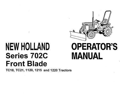 Use this New Holland Series 702C Front Blade operator’s manual as a guide, Your machine will remain a reliable working tool provided it is kept in good working condition and serviced properly.