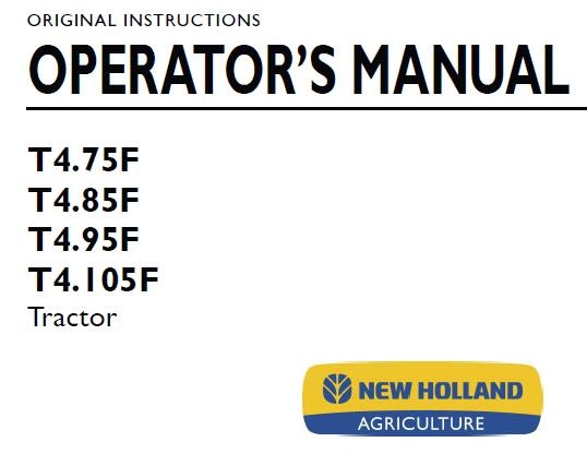 This is Complete Operator’s Manual for New Holland T4.75F , T4.85F , T4.95F , T4.105F Tractor.
