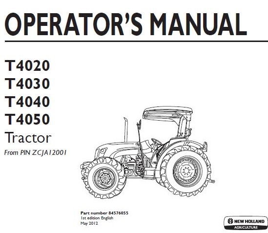 This is Complete Operator’s Manual for New Holland T4020, T4030, T4040, T4050 Tractor .