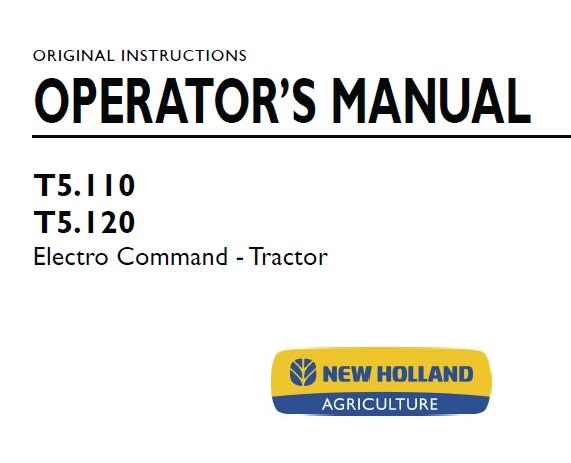 Use this New Holland T5.110, T5.120 Electro Command Tractor operator’s manual as a guide, Your machine will remain a reliable working tool provided it is kept in good working condition and serviced properly.