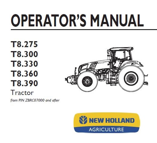 This is Complete Operator’s Manual for New Holland T8.275, T8.300, T8.330, T8.360, T8.390 Tractor .