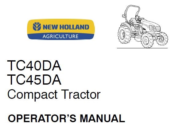 This is Complete Operator’s Manual for New Holland TC40DA , TC45DA Compact Tractor.