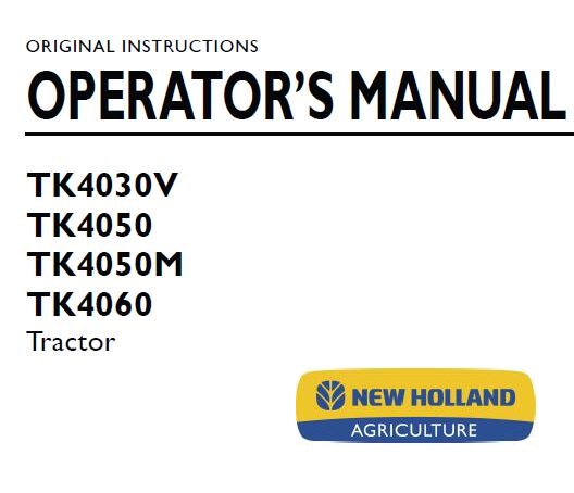 This is Complete Operator’s Manual for New Holland TK4030V, TK4050, TK4050M, TK4060 Tractor.