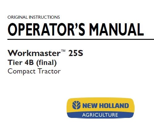 This is Complete Operator’s Manual for New Holland Workmaster 25S Tier 4B (final) Compact Tractor Tractor.