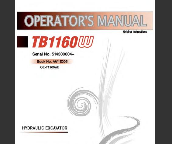 This is Complete Operator’s Manual for Takeuchi TB1160W Hydraulic Excavator.