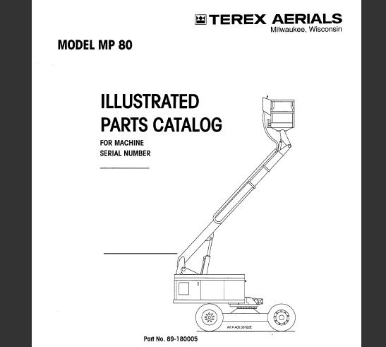 This is highly detailed parts catalog manual. All technical details taken directly from the manufacturer can be found in this manual, It is the factory manual from the manufacturer. Terex Aerials Simon Model MP80 Sell-Propelled lift parts catalog manual is the same manual used by professional technicians, mechanics and workshops around the world.