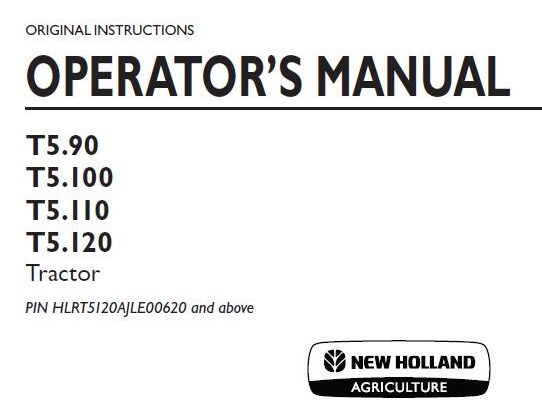 New Holland T5.90, T5.100, T5.110, T5.120 Tractor Operator’s Manual ( PIN HLRT5120AJLE00620 and above )