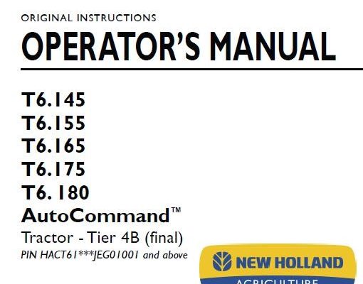 New Holland T6.145, T6.155, T6.165, T6.175, T6. 180 AutoCommand Tier 4B (final) Tractor Operator’s Manual