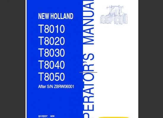 New Holland T8010, T8020, T8030, T8040, T8050 Tractor Operator’s Manual ( After S/N Z8RW06001 )