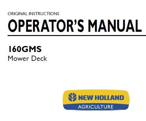 This is Complete Operator's Manual for New Holland 160GMS Mower Deck. Your machine has been designed and built to the highest standards of quality. It conforms to all current…