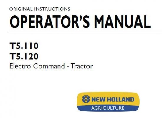 This is Complete Operator's Manual for New Holland T5.110, T5.120 Electro Command Tractor. Your machine has been designed and built to the highest standards of quality. It conforms to…