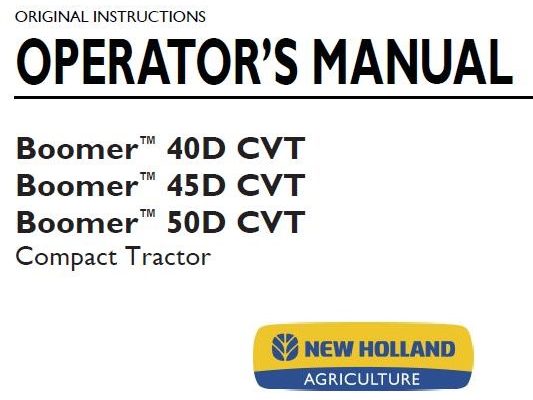 New Holland Boomer 40D CVT, Boomer 45D CVT, Boomer 50D CVT Compact Tractor Operator’s Manual