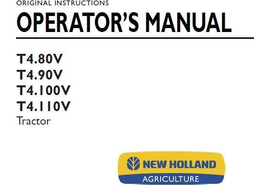 New Holland T4.80V, T4.90V, T4.100V, T4.110V Tractor Operator’s Manual