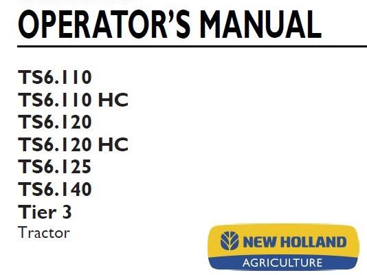 New Holland TS6.110, TS6.110 HC, TS6.120, TS6.120 HC, TS6.125, TS6.140 Tier 3 Tractor Operator’s Manual