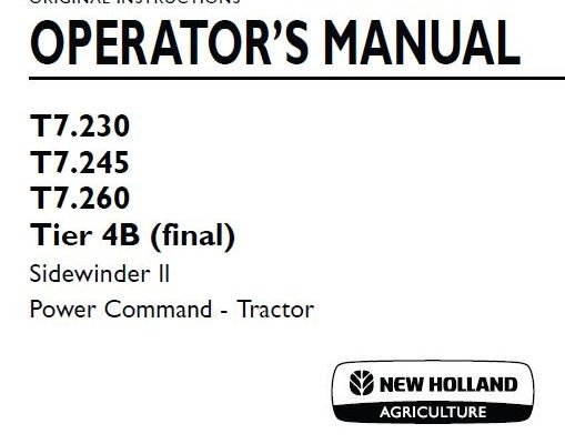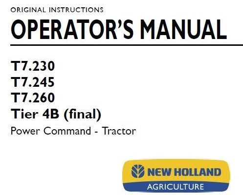 New Holland T7.230, T7.245, T7.260, Tier 4B (final) Power Command Tractor Operator’s Manual