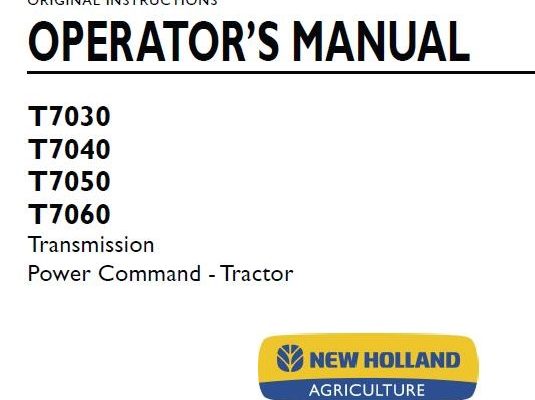 New Holland T7030, T7040, T7050, T7060 Transmission Power Command Tractor Operator’s Manual