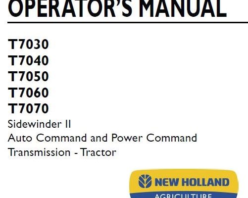 This is Complete Operator's Manual for New Holland T7030, T7040, T7050, T7060, T7070 Sidewinder II Auto Command and Power Command Transmission Power Command Tractor. Your machine has been designed…